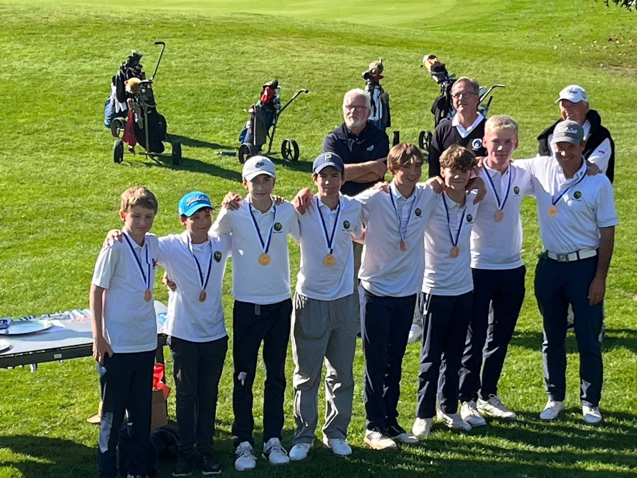 Wieder als Underdogs, gingen wir bescheiden, demütig und mit viel atmen Schlag für Schlag in die Lochwettspiele. Diesmal konnten wir 3:2 gewinnen. Besonders ist zuerwähnen, dass Josh (11. Jahre) und Mads (13. Jahre) im klassischen Vierer gegen zwei 16. jährige am letzten Loch gewonnen haben.