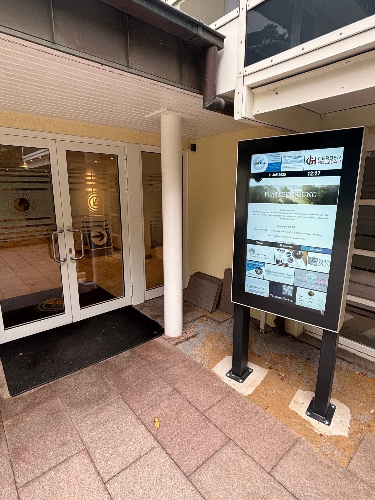 Am Dienstag wurden am Clubhaus, an der Range und am 1. Tee sogenannte Outdoor-Stelen installiert, die viele neue Funktionen mit sich bringen. Auf diesen wird bspw. die Platzbelegung sowie das Wetter im Forecast angezeigt und über aktuelle Ereignisse auf sowie neben dem Platz informiert. Darüber hinaus soll es in naher Zukunft die Schnittstelle zu PC Caddie geben, sodass Sie sich mit Ihrer DGV Karte zu Turnieren anmelden können. Die Displays werden per Touch bedient und sind momentan mit der Webseite verbunden.
