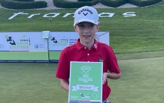 Maximilian Dabis gewinnt die Framas Open Unser 12-jähriges Jugendmitglied Maxi Dabis hat bei dem Nachwuchs-Golfturnier Framas Open der German Junior Golf Tour auf dem Ersten Golfplatz Westpfalz in der Nähe von Pirmasens mitgespielt. Hier dürfen wir Maxi zitieren: „Ich habe meine Altersklasse, die AK 12, gewonnen. Mit Runden von +10 (46), +5 (41), +5 (41) und +2 (38), und habe mich somit für die Weltmeisterschaft nächstes Jahr in Irland qualifiziert. Vielen Dank an #germanjuniorgolftour für dieses tolle Turnier in der Pfalz.“ Maxi, wir gratulieren Dir zu dieser starken Leistung! Weiter so!